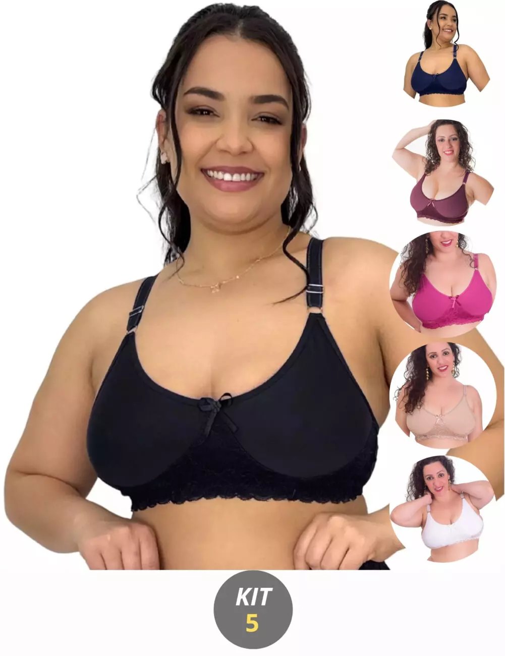 Os sutiãs que compõem os kits de 3 peças e kits de 10 peças são fabricados com materiais confortáveis e possuem um ótimo acabamento na costura. Feitos em tecido microfibra com renda na base do modelo para torná-los ainda mais encantadores, os sutiãs disponíveis vão do P ao GG. Assim, você consegue atender mulheres que vestem manequins do 40 até 46.