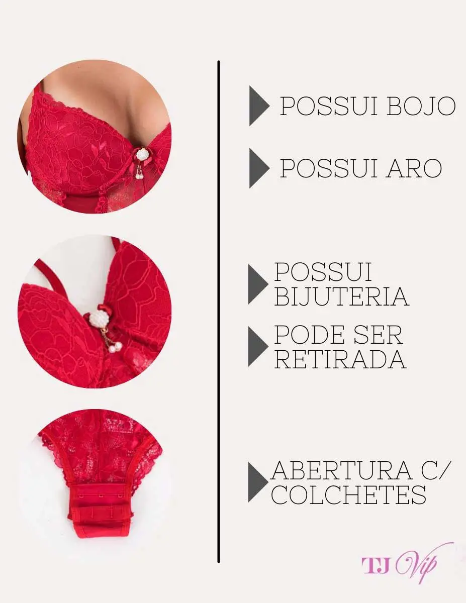 O body possui abertura com colchete entre as pernas e forro de algodão que proporciona mais facilidade de manuseio e a modelagem é cavada tornando a peça ainda mais completa.