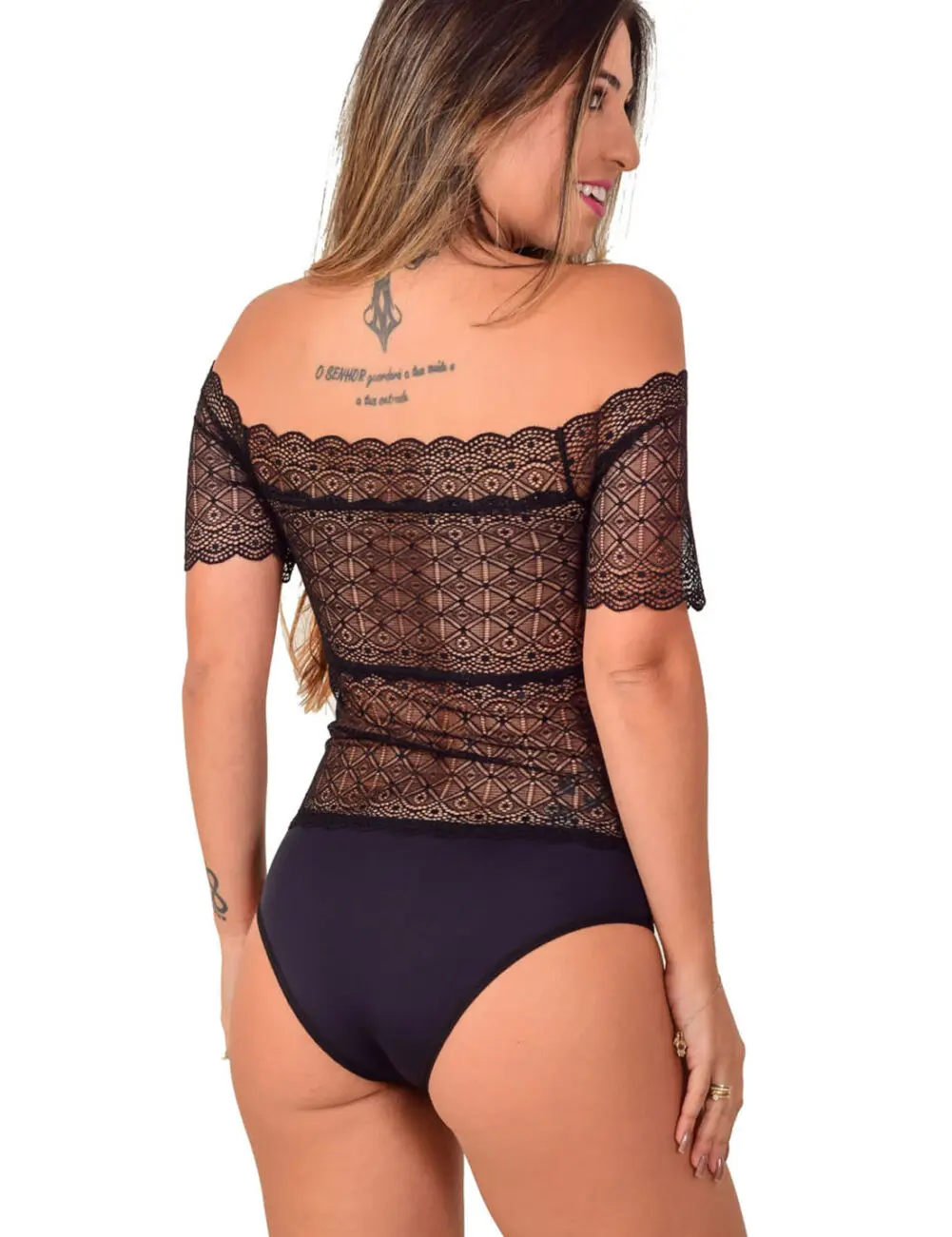 Body Manga Longa confeccionado em renda, tule e detalhe em poliamida. O body sem bojo, possui tule nas mangas e no decote em V. Com renda na parte da frente, atrás e no viés das pernas. E o tecido poliamida fica na região da calcinha. Body sem bojo e sem aros, possui fecho no fundo em 3 níveis de colchetes e com forrinho 100% algodão.