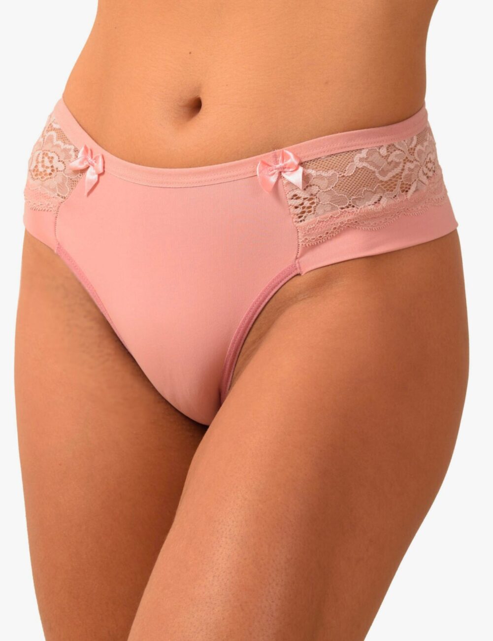 Calcinha cós duplo confeccionado em microfibra lisa com detalhe em renda nas laterais. O tecido duplo no cós proporciona maior ajuste no corpo com maior conforto.