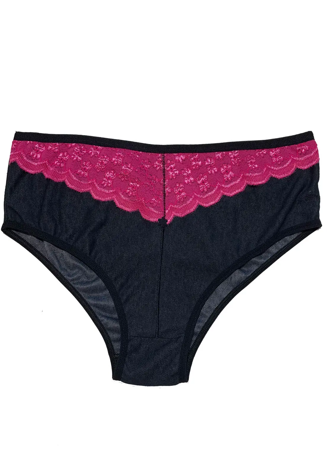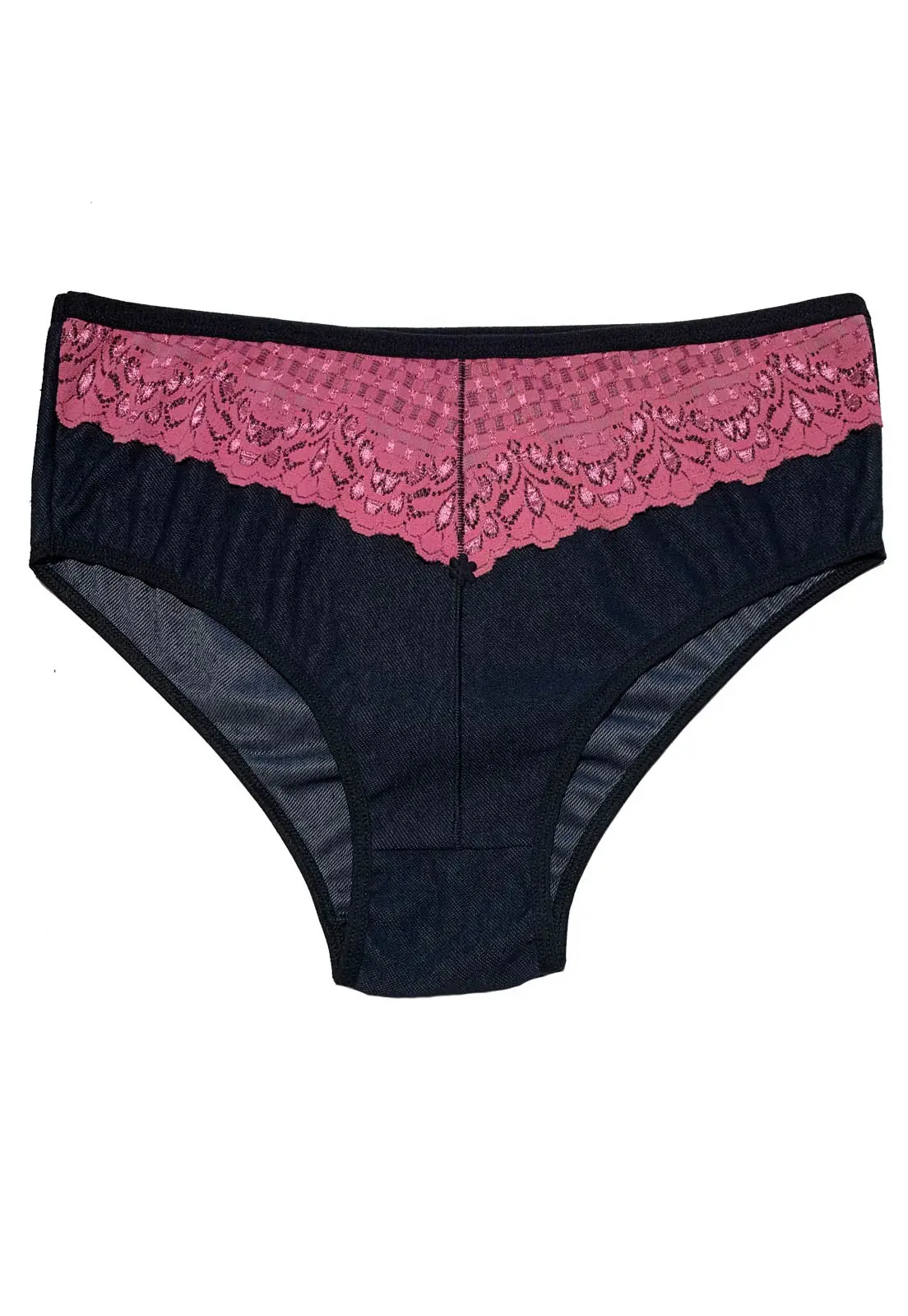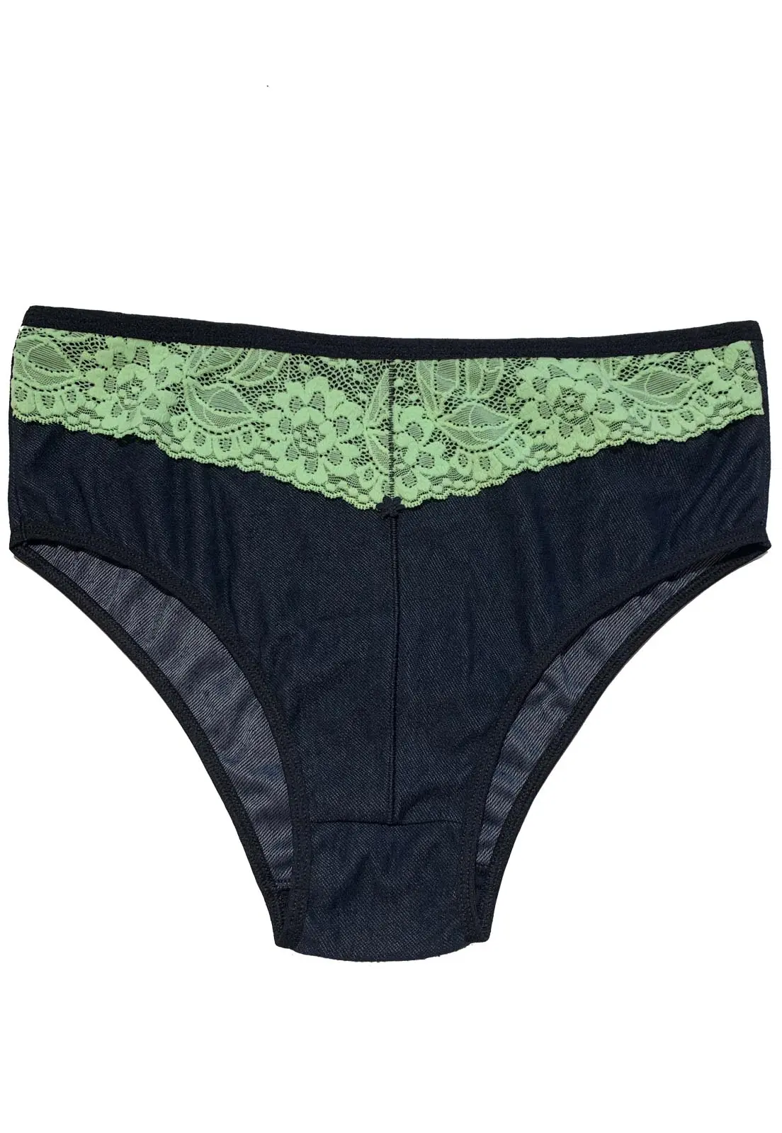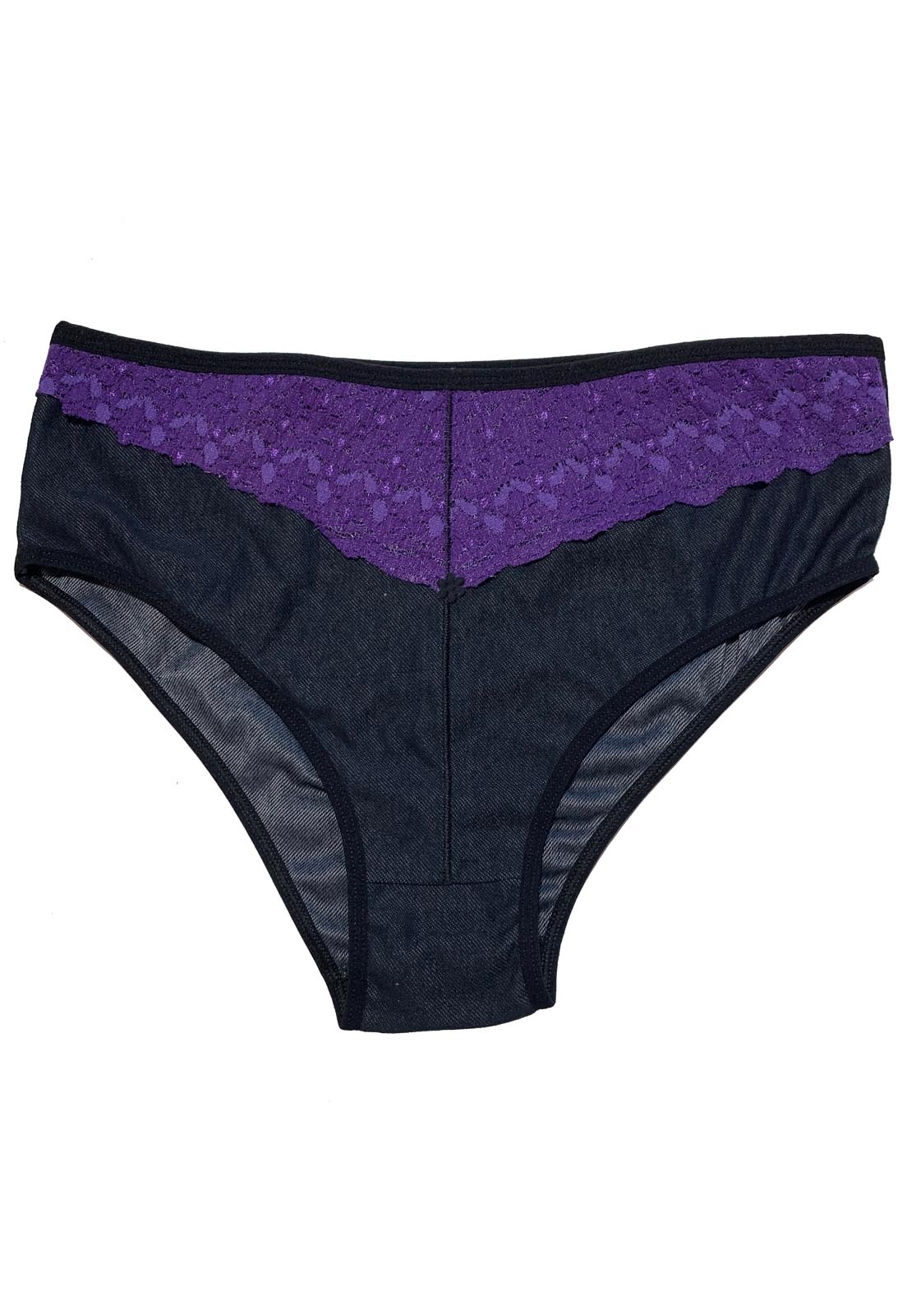 Calcinha Plus Size em viscolycra estilo jeans. Com detalhe em renda na parte frontal que fica sobreposta ao tecido, não encontando na pele. SeA calcinha possui elástico na cintura e nas pernas. Modelagem ideal para quem almeja total segurança no dia a dia! Essa é uma peça feita para as mulheres modernas que prezam por beleza e conforto sempre!