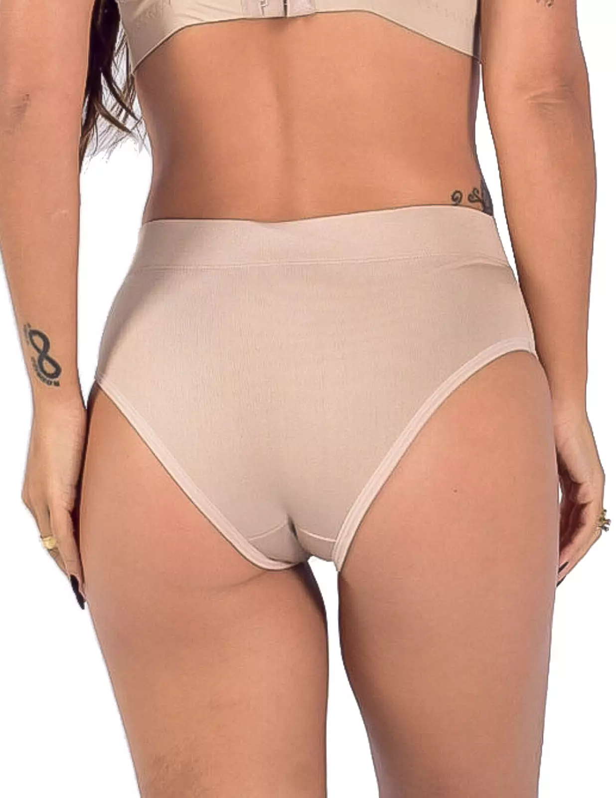 Calcinha Cintura Alta Confortável em microfibra lisa com elástico largo embutido na cintura que não toca a pele.