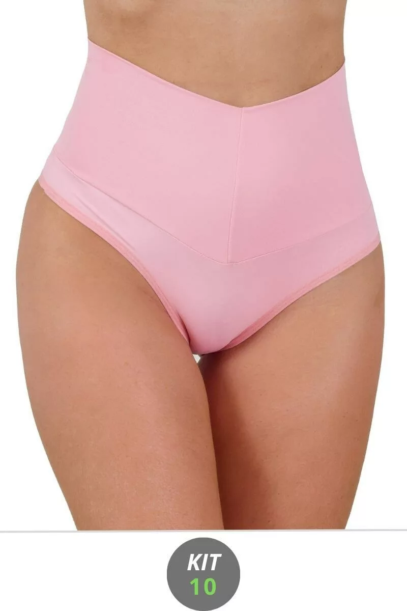 Kit 10 Calcinhas Cintura Alta confeccionada em Poliamida Cós Duplo que ajuda a modelar a cintura.