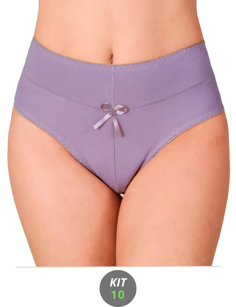Kit 10 Calcinhas de Algodão estilo tangão toda liso com detalhes de renda sobreposta ao cotton e detalhes na costura em ponto aberto.