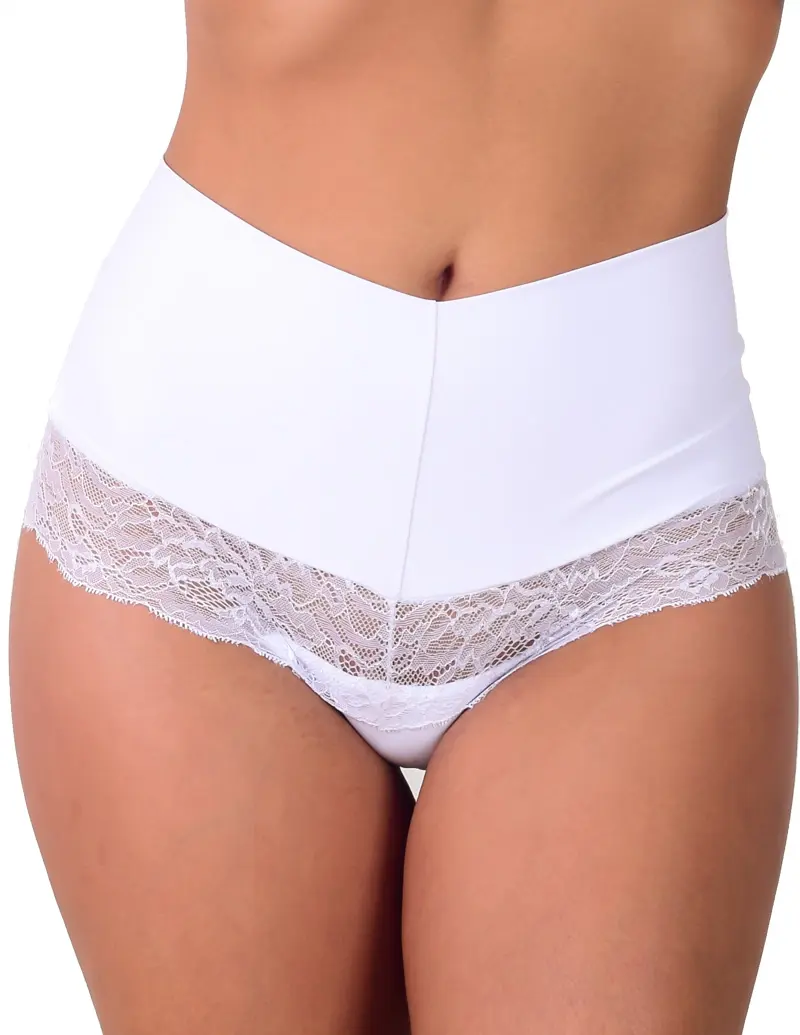 A calcinha possui cós duplo alto com babadinho em renda, que ajuda a modelar a cintura, proporcionando conforto e firmeza.