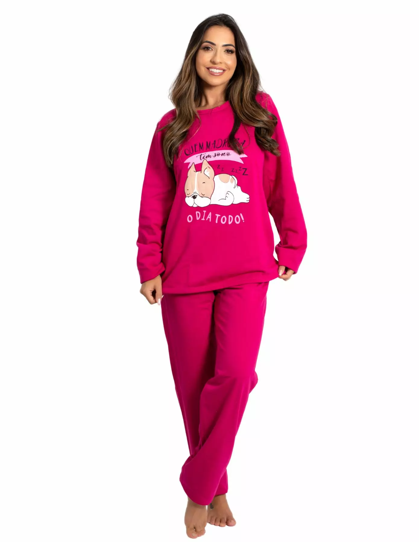 Pijama de inverno feminino, em tecido tipo flanelado Moletinho blusa manga longa com bainha na parte de baixo e nas mangas e na frente estampas variadas.