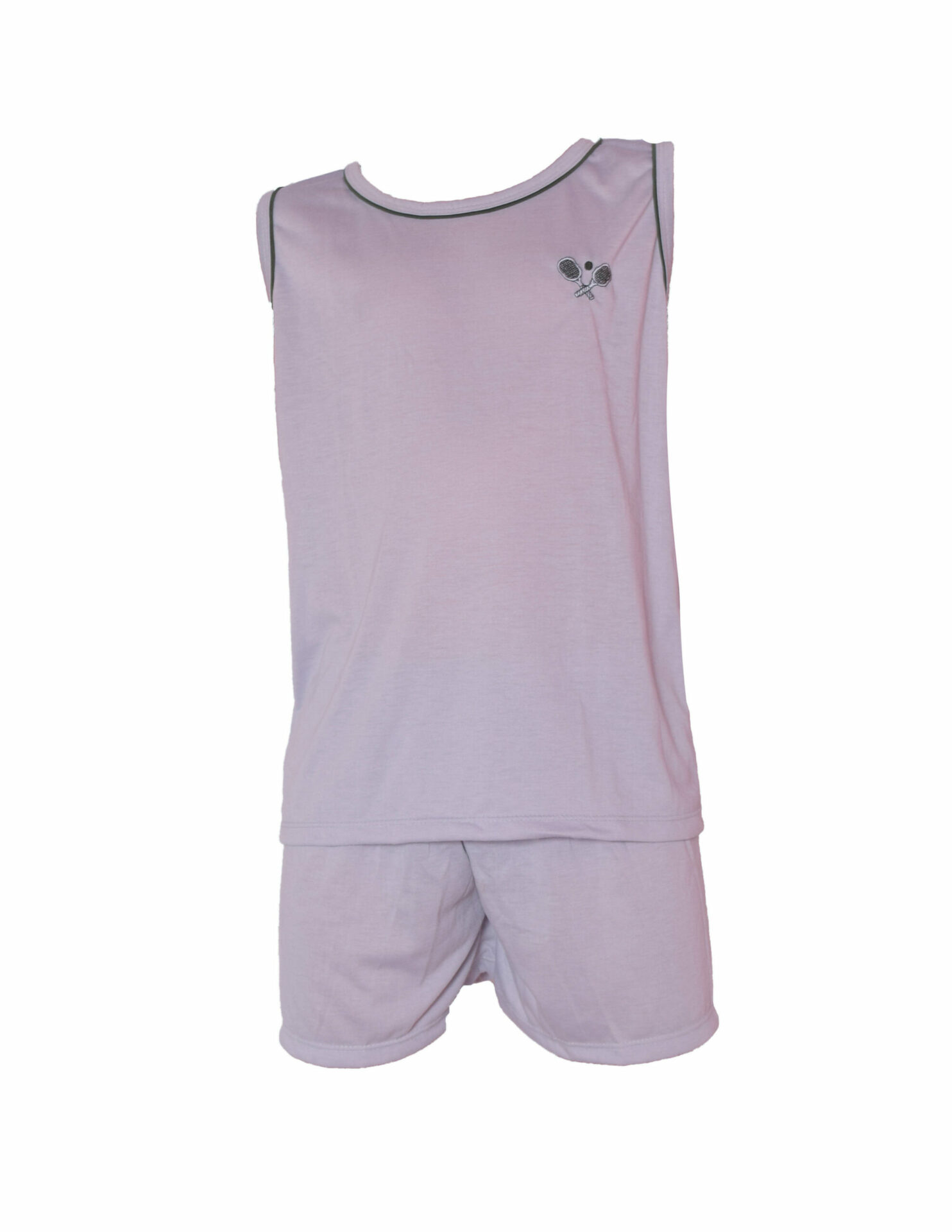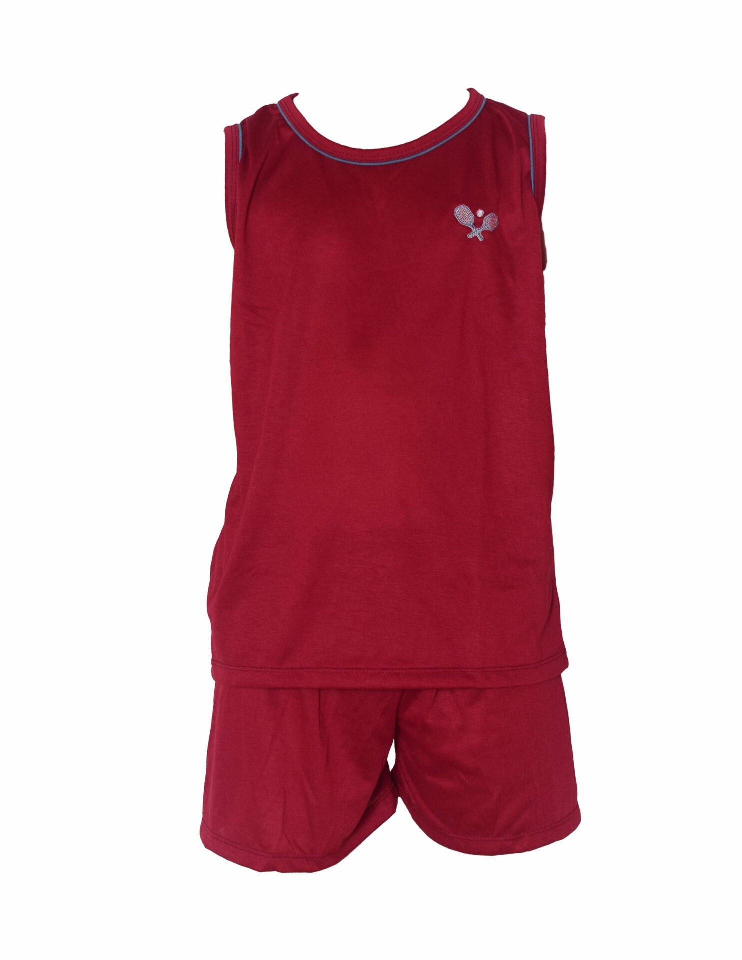 Pijama infantil regata masculino em malha. O short e a camisa são em malha lisa, a camisa com bordados variados na altura do peito, a bermuda tem bainha nas pernas e elástico embutido na cintura. Um modelo super confortável e muito bonito para que os meninos passem uma noite tranquila.