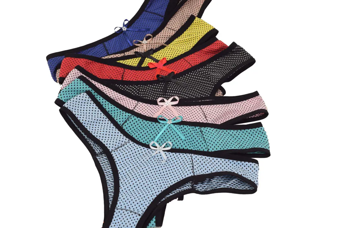 Tanga em poá com modelagem tradicional, com elástico sanduíche macio branco e lindo lacinho de cetim com pedrinha. Tanga super confortável ideal para o seu dia a dia.